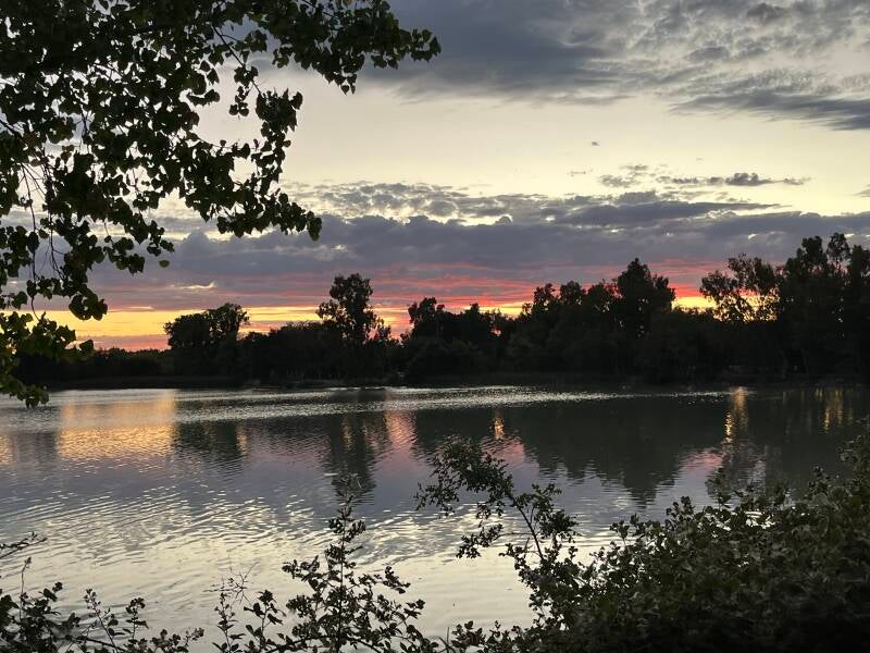 Camped at a small private lake in a rural and agricultural setting in Nicolaus, Calif. A quick 45 minutes from Sacramento, it was a good landing spot after we closed on the house.