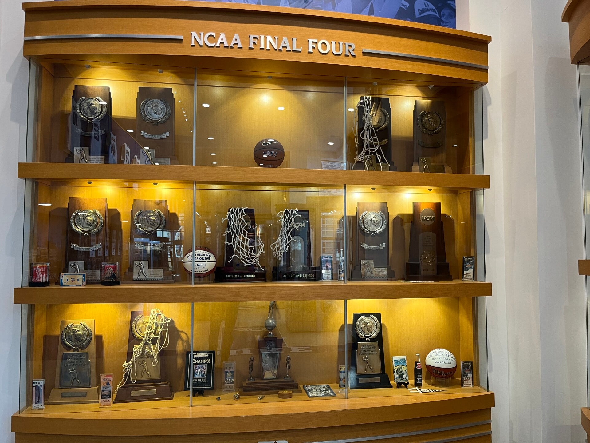 The following day we went to the campus at Duke. Jim went to the basketball Hall of Fame Museum to pay homage, then watched the men's tennis team practice before heading to the campus store to buy new Duke gear. Dana in the meantime went to the Art Museum on campus and then to the Duke gardens.