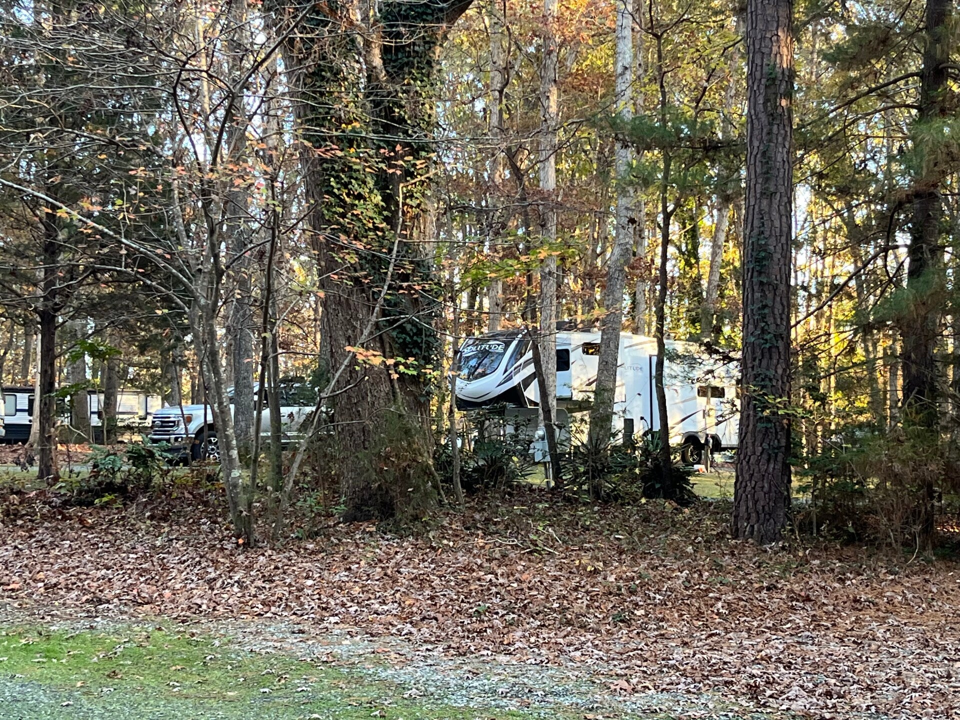 Found a wonderful campground in the woods out in the country. Very peaceful and relaxed setting. Forgot how kind and polite people from the South are. The humor of campground owner was amusing - Dana mentioned in conversation that we were just in NYC for the Marathon. The owner said in his southern drawl: "Why did you do that...... did your momma drop you on the head as a baby?"