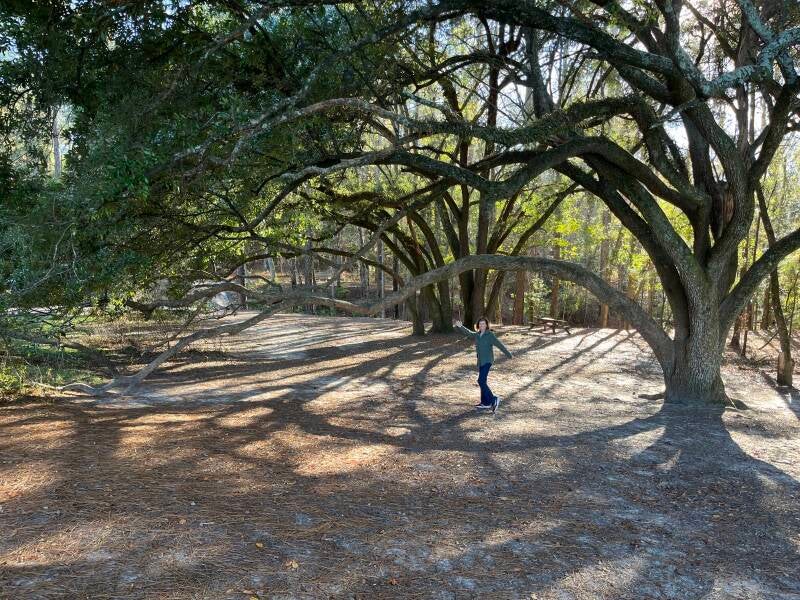 We got up early (6 am) to head Congaree National Park. The rain was coming at 10 am and we got there for our first hike at 6:45. This is an incredible park we highly recommend. Very much another world compared to many parks.
