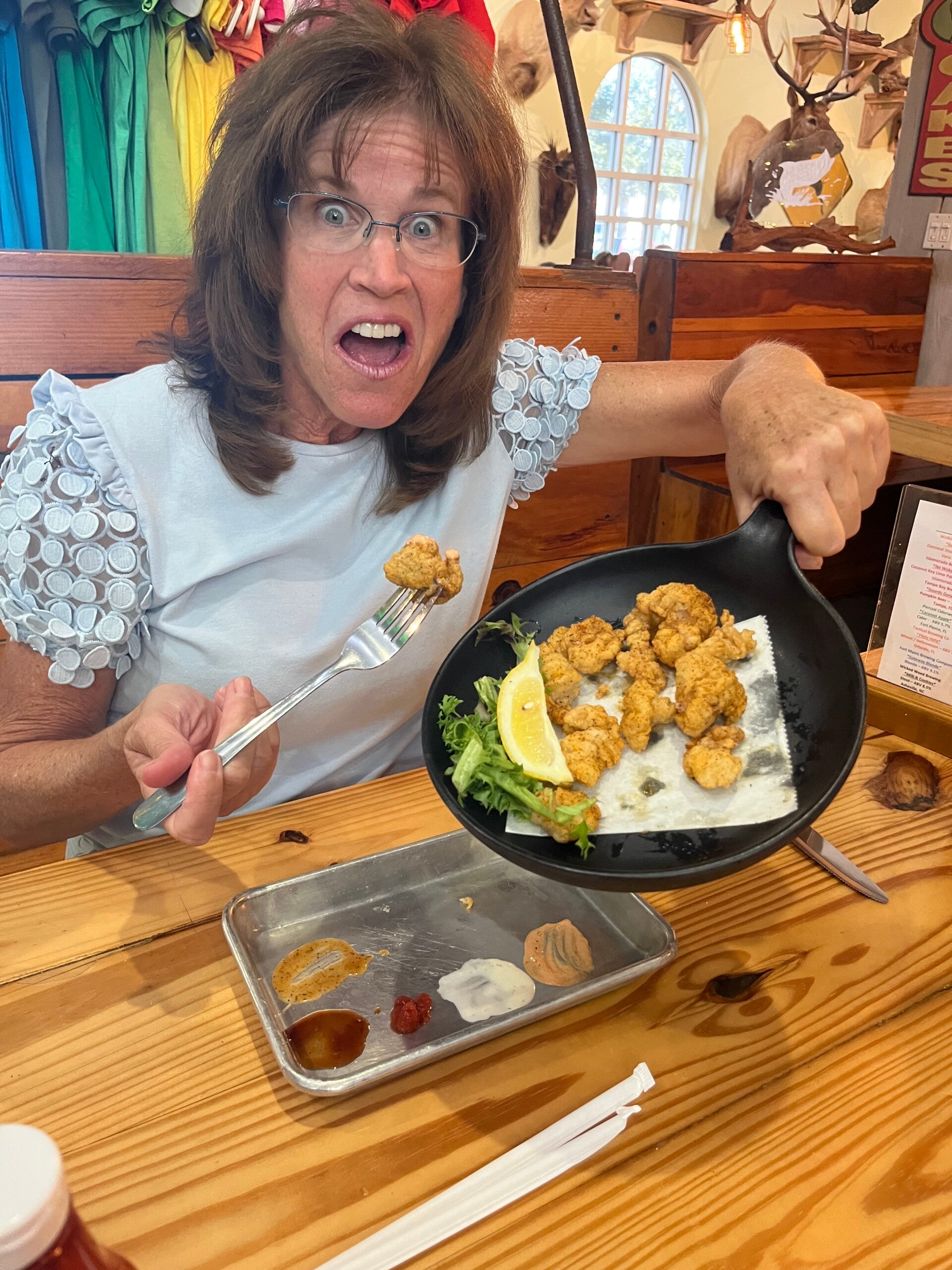 Since our birthdays are two days apart, we celebrated this year by going to a nice seafood restaurant. When in Rome ....... we decide to try some Cajun Alligator.