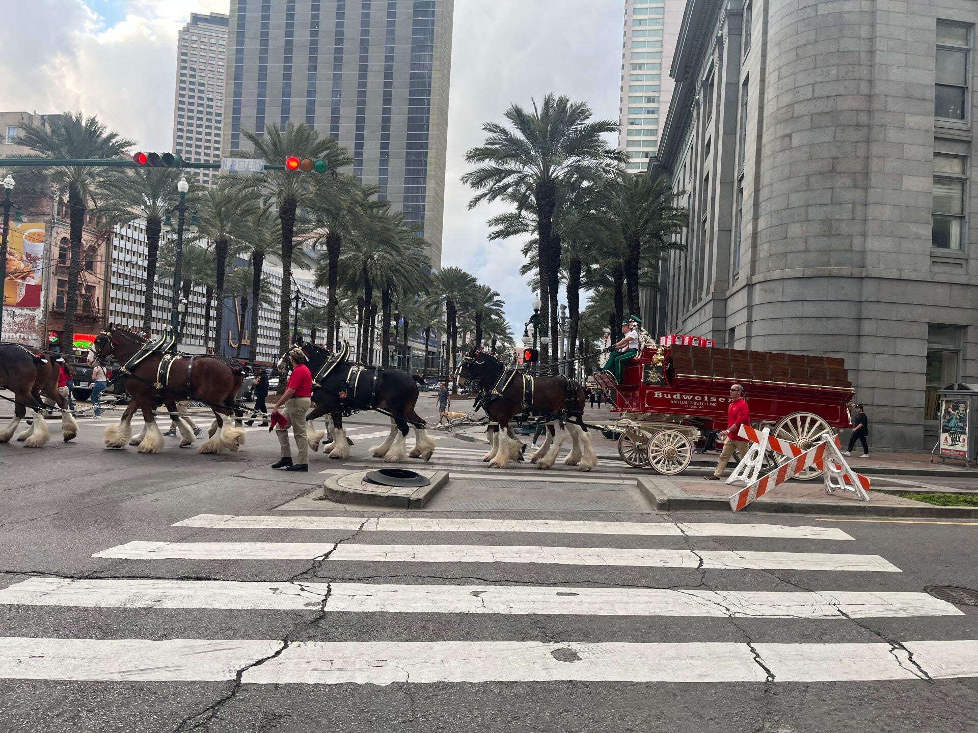 Spent another full day in the French Quarter. Jim geeked out on history by touring the World War 2 museum (thanks Uncle Chuck for the recommendation). Awesome tour guide with great insights. Jim could have spent another full day there. At the same time Dana went on a steamboat ride along the Mississippi River with a historical tour and a Jazz band. We saw the big Budweiser horse drawn carriage with Clydesdale horses and the little dalmatian aboard.