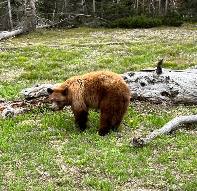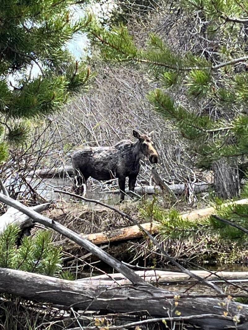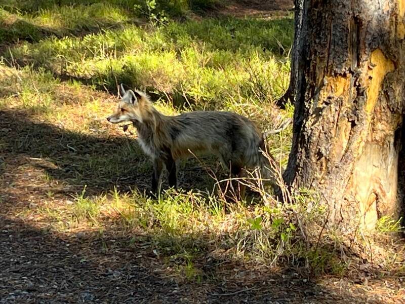 The wild life here is amazing. We saw a small fox, a moose (no antlers) and a brown bear (luckily we were in our truck). There are Grizzley bears in the park, but we didn't see any. We also saw a herd of Bison grazing in the distance, but too far for our camera phones to get a good look. Jim ran next to the Elk Preserve, but there were no elk there.