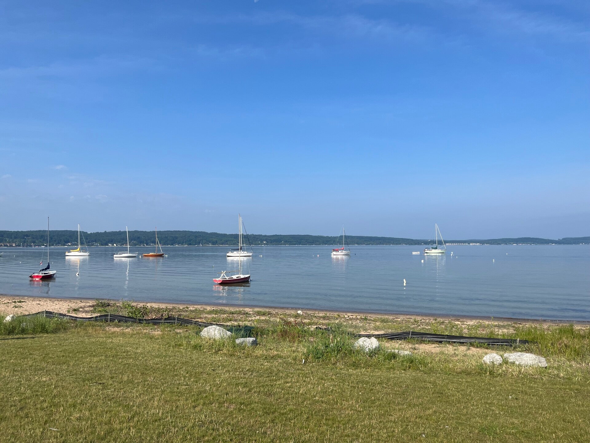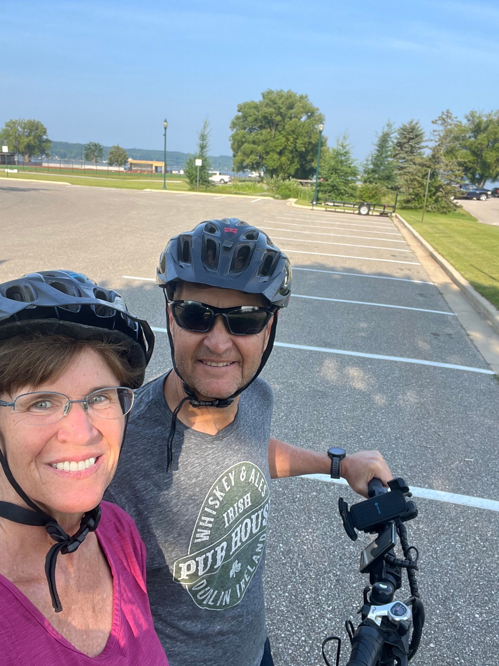 Beautiful state park that our RV can actually fit in (most state parks don't accommodate 30'+ rigs). Nice place in gorgeous part of the country. Dana enjoyed doing her water exercises in the lake. We rode our bikes 7 miles round trip to the farmers market and picked up a haul of fresh locally grown fruits and vegetables from Boyne City. Went to Charlevoix to visit Dana's godparents at their summer home, then over to Jim's Uncle Tom on Lake Charlevoix to see him, his cousin Todd and his wife Sarah.