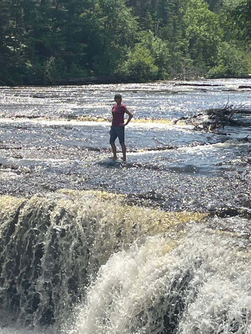 Drove to the "UP - Upper Peninsula" of Michigan and visited Tahquamenon Falls. Pretty remote location in very dense forest in a sparsely populated place. The campground was pretty basic but served its purpose. The falls were very pretty. The upper falls were very large 48 foot drop that you can't get that close to. The lower falls were a series of falls ranging from 2-5 feet and you can wade into the river and stand next to them. We had the great idea of hiking from the upper to the lower falls (9 miles round trip). Despite being in good physical condition from running, this was a butt-kicker of a hike. With all the stairs, inclines/declines and challenging trail, Jim found this more difficult than a 20 mile run.