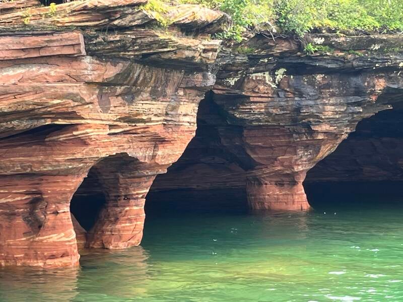 Went to visit this Archipelago of 22 islands in Lake Superior on the very northern coast of Wisconsin. This marks the 5th and final of the great lakes we seen. The campground was very cool. Neat welcome sign made of old home doors. They also had tiny houses designed as boats. After arrival, we went to downtown Bayfield for dinner and had fresh caught fish at a restaurant that multiple people recommended. Good food.
