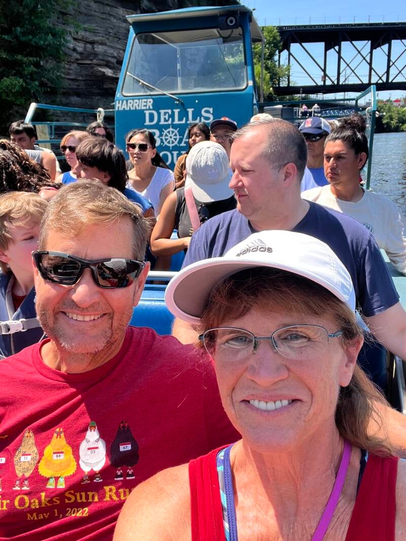 The next day we went on a boat tour of the islands. It was okay at best (wouldn't recommend). Devil's Island has very interesting rock formations, but the others looked very similar to each other (lots of trees). That evening we met our old friend Lori Hoffman (she was a bridesmaid at our wedding almost 33 years ago). Fun catching up and hanging out. The next day we ran on the track at her old High School in Ashland, WI while she rollerbladed. Fun times