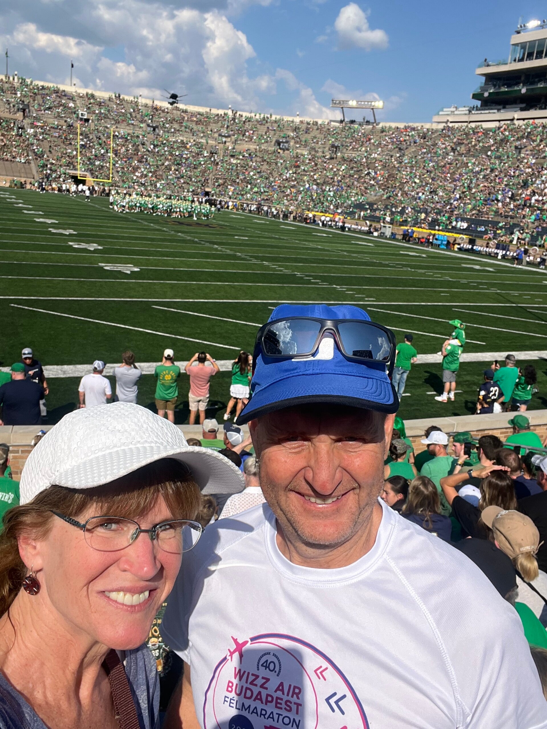 Jim crossed a bucket item of his list when we attended a Notre Dame football game in South Bend, Indiana. We got there a bit early and walked around - what a beautiful campus. The stadium is iconic, the crowd was electric and the setting was amazing. We had a blast cheering for the Irish. Crazy amongst 77,000 fans - Dana happened to bump into her college roommate from Western Michigan University - small world. We got lucky and saw the marching band in their tradition of playing their fight song on the way to the stadium before the game - here is the video from our phone. Great day.
