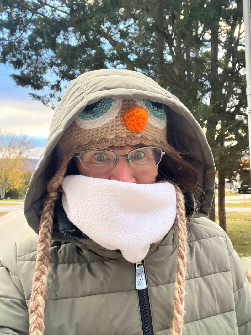 The weather was incredible for 13 out of the 14 days we were there. The last day a Canadian arctic blast rolled in and overnight temperatures were in the teens and the high was only 36 that day. It actually snowed (just flurries) and we hibernated in the RV with the fireplace on that day. Dana crocheted Shamus a very cool Racoon winter cap as he was very fond of the racoons around the campground.
